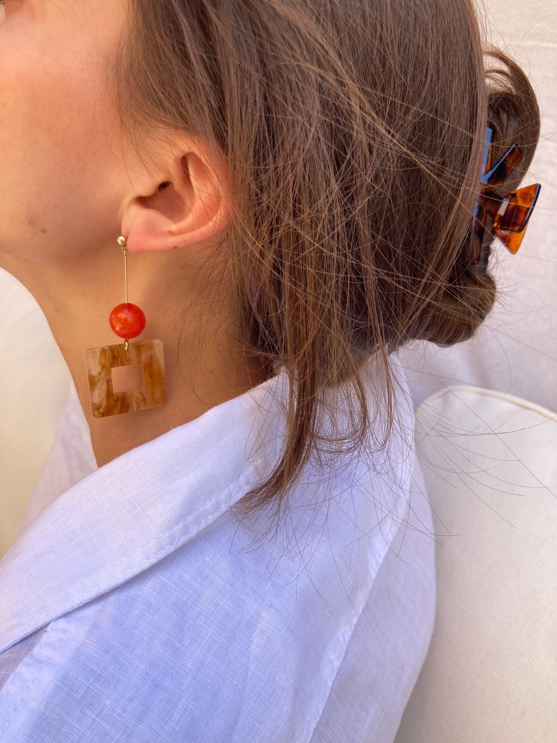 Nos boucles d’oreilles Jo allient la fantaisie à la simplicité grâce à ses formes géométriques et sa couleur orange pimpante ♥ . Chez JacBijoux on les porte toute l'année !